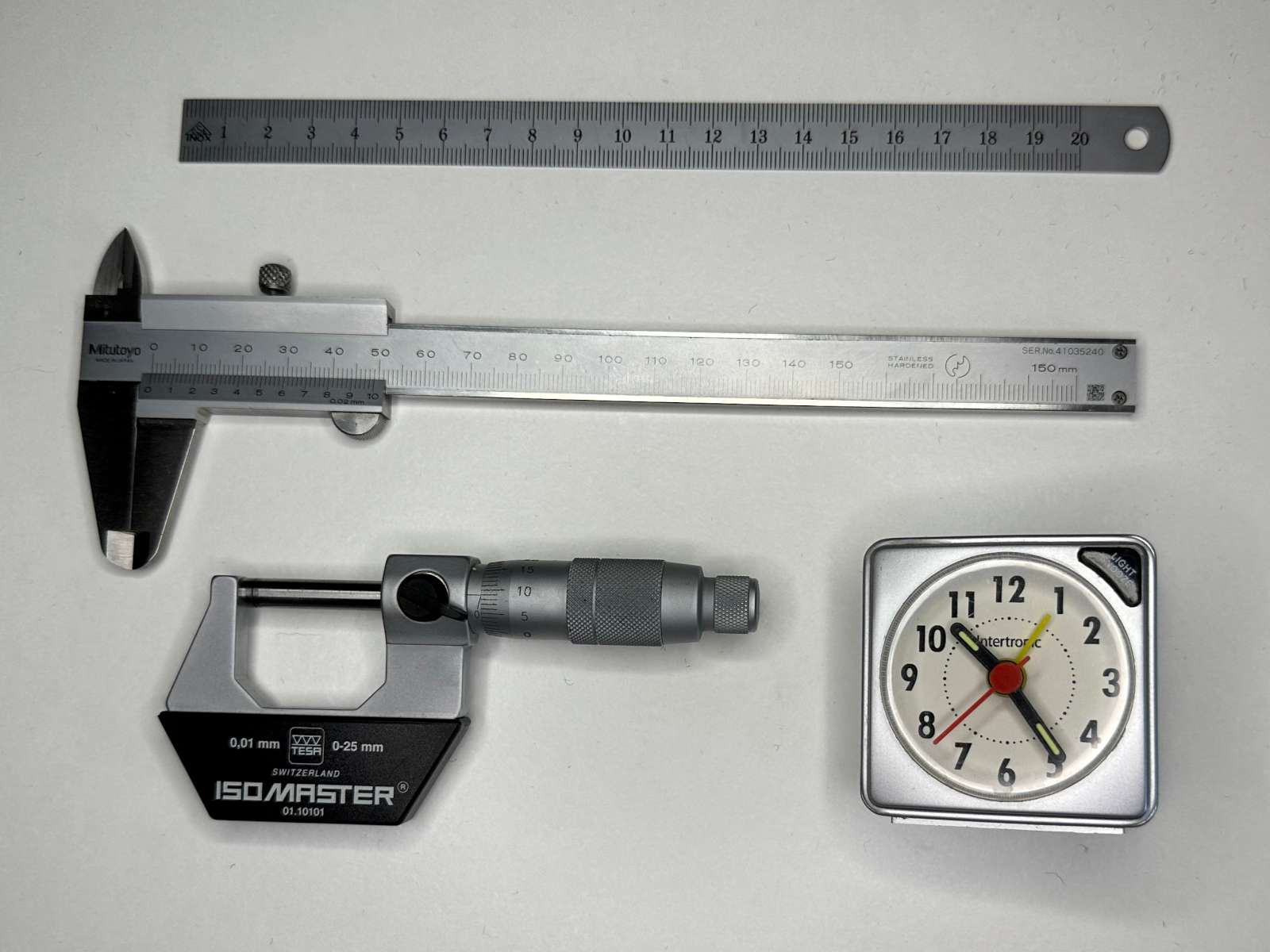 Let's have a look at the picture below: can you guess which one is the most accurate instrument? Hint: it's not the micrometer.