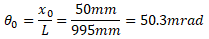 From them linear amplitude we can find the angular amplitude θ0 using: