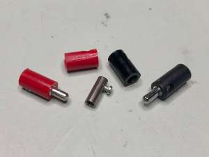 Some 2.6 mm banana plugs and sockets used to connect to the