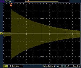 Ring-down signal of the circuit. 10 mV/DIV, 2 μs/DIV.